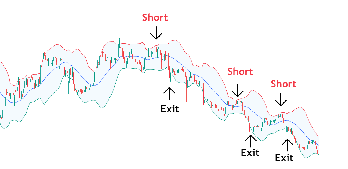 Beachte: Ich würde niemals „blind“ am Rand der Bollinger Bänder auf eine Umkehr traden. Viel mehr würde ich hier nach Umkehrkerzen wie einem Hammer oder Engulfing als Signal abwarten. Schließlich könnte der Kurs auch aus den Bändern ausbrechen.