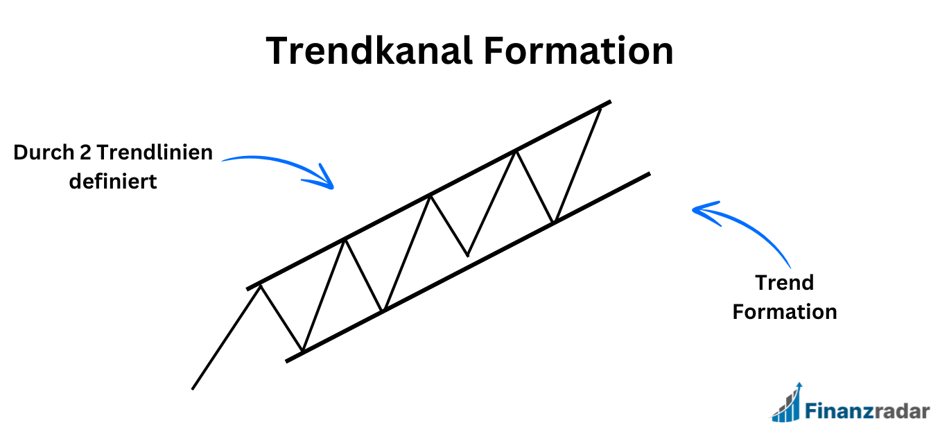 Ein Trendkanal besteht aus 2 parallelen Trendlinien. Je nach Steigungswinkel sprechen wir von einem steigenden oder fallenden Trendkanal. Ein Trendkanal gilt (wie der Name schon sagt) als Formation für Trendfolge. Eine Trendlinie wird durch die Verbindung von Verlaufshochs definiert, während die andere Trendlinie durch die Verbindung von Verlaufstiefs gekennzeichnet wird.