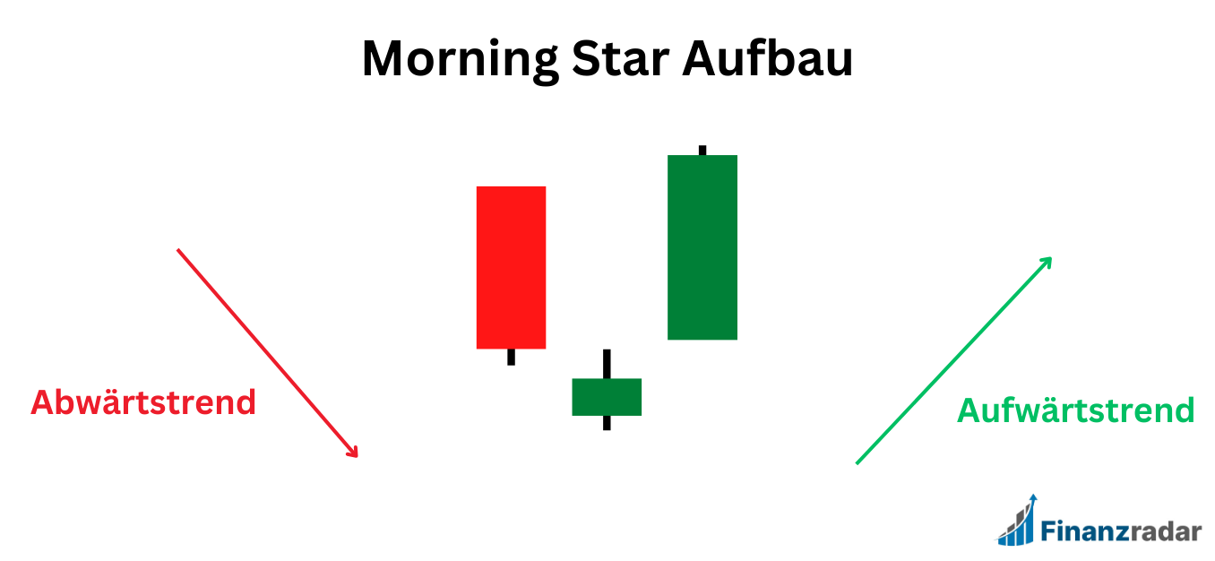 Beachte: Das Gegenstück zum Morning Star ist der Evening Star. Dieser folgt nach einem Aufwärtstrend und kehrt diesen in einen Abwärtstrend um.