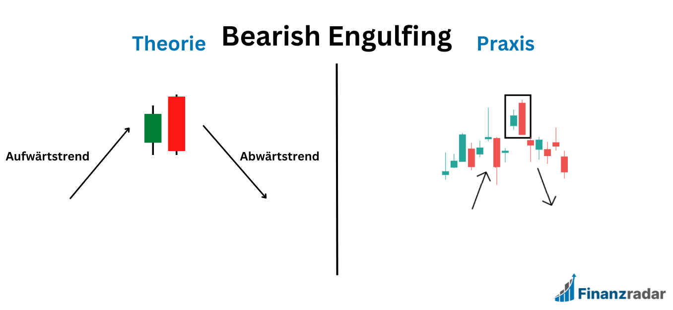 Das sogenannte Bullisch Engulfing kehrt eine Abwärts- in eine Aufwärtsbewegung um, während das Bärische Engulfing eine Aufwärts- in eine Abwärtsbewegung umkehrt. Halt nach Trendbewegungen also Ausschau nach dem Muster um eine mögliche Umkehr frühzeitig zu erkennen.