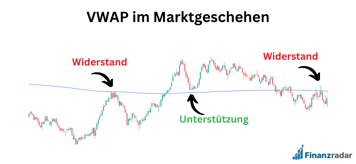 In der Praxis fungiert der VWAP als dynamische Unterstützung bzw. Widerstand und hilft Dir beim Timing von Ein- und Ausstiegen. Mehr dazu im Beitrag: