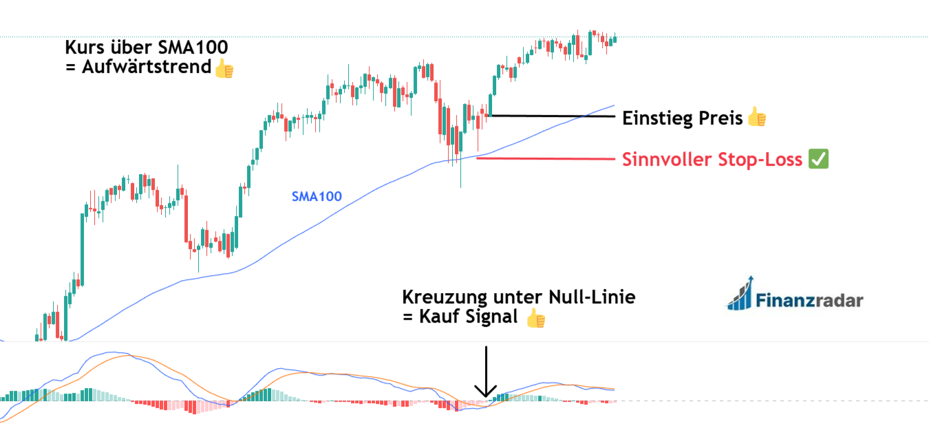 #3 Indikator Strategie (1) – Kombi aus SMA100 und MACD.